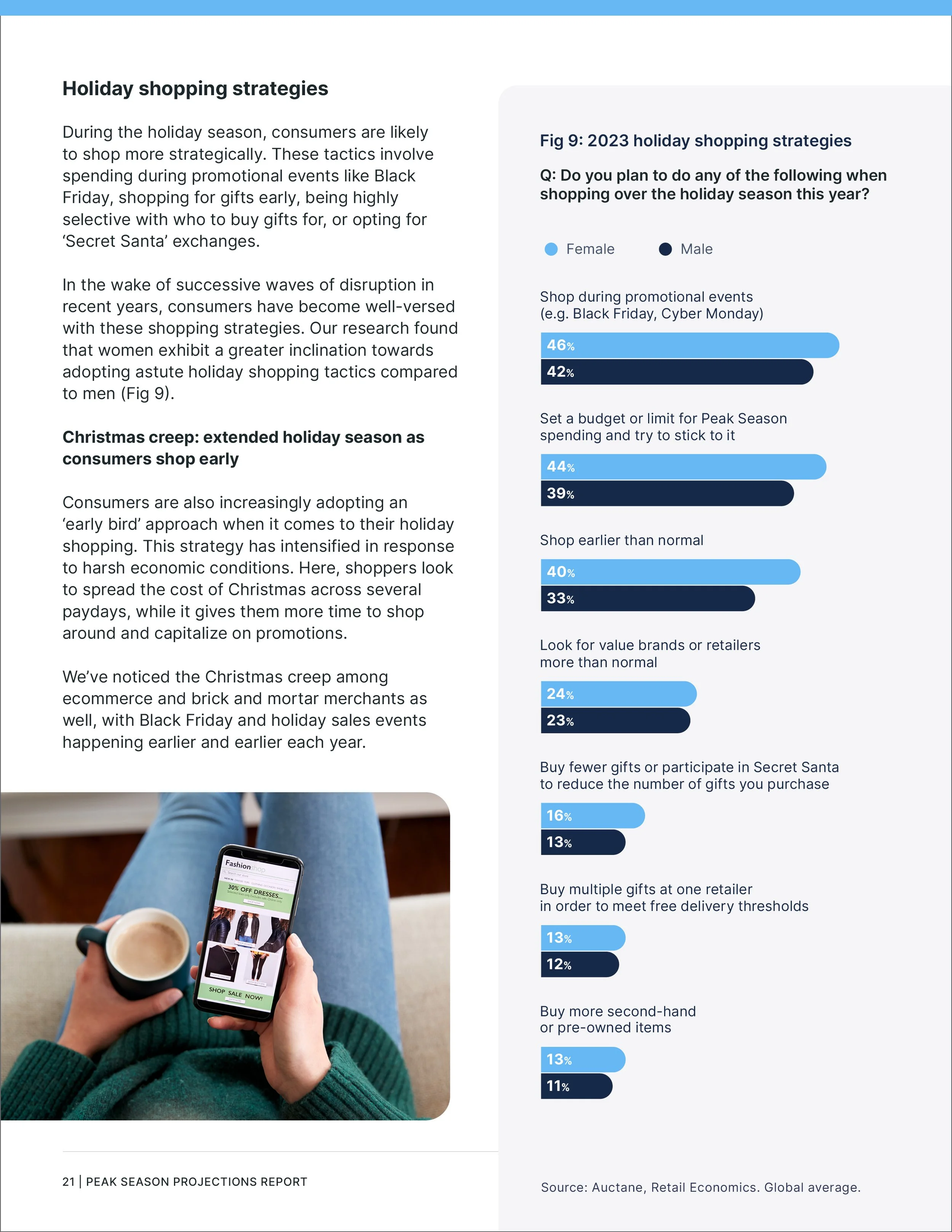 For this report, consumer and B2B merchant surveys were conducted by Retail Economics in order to gain insights for ecommerce businesses before the peak shopping season. Along with designing the report, I created infographics, charts, and data visualizations to convey the information found in this research.