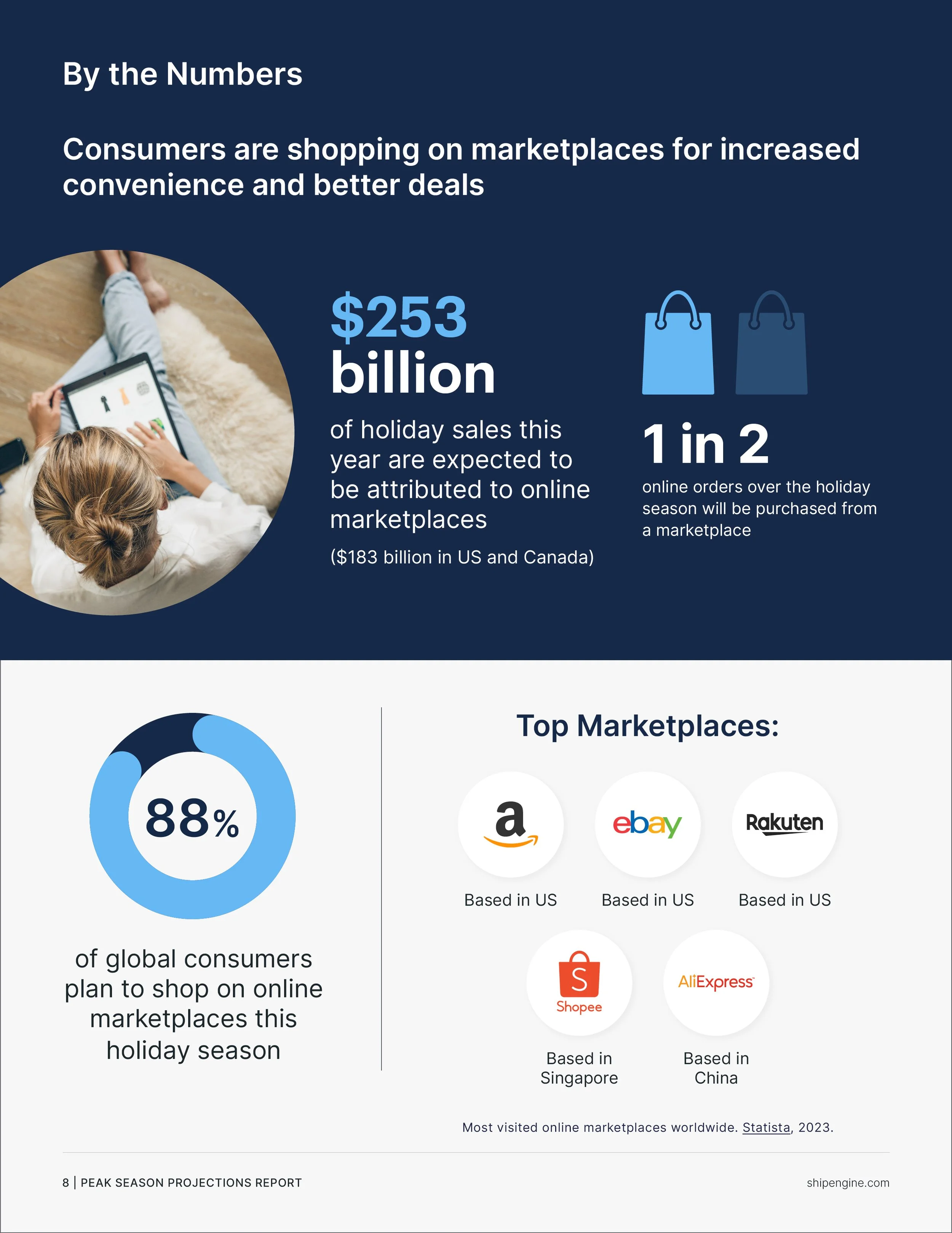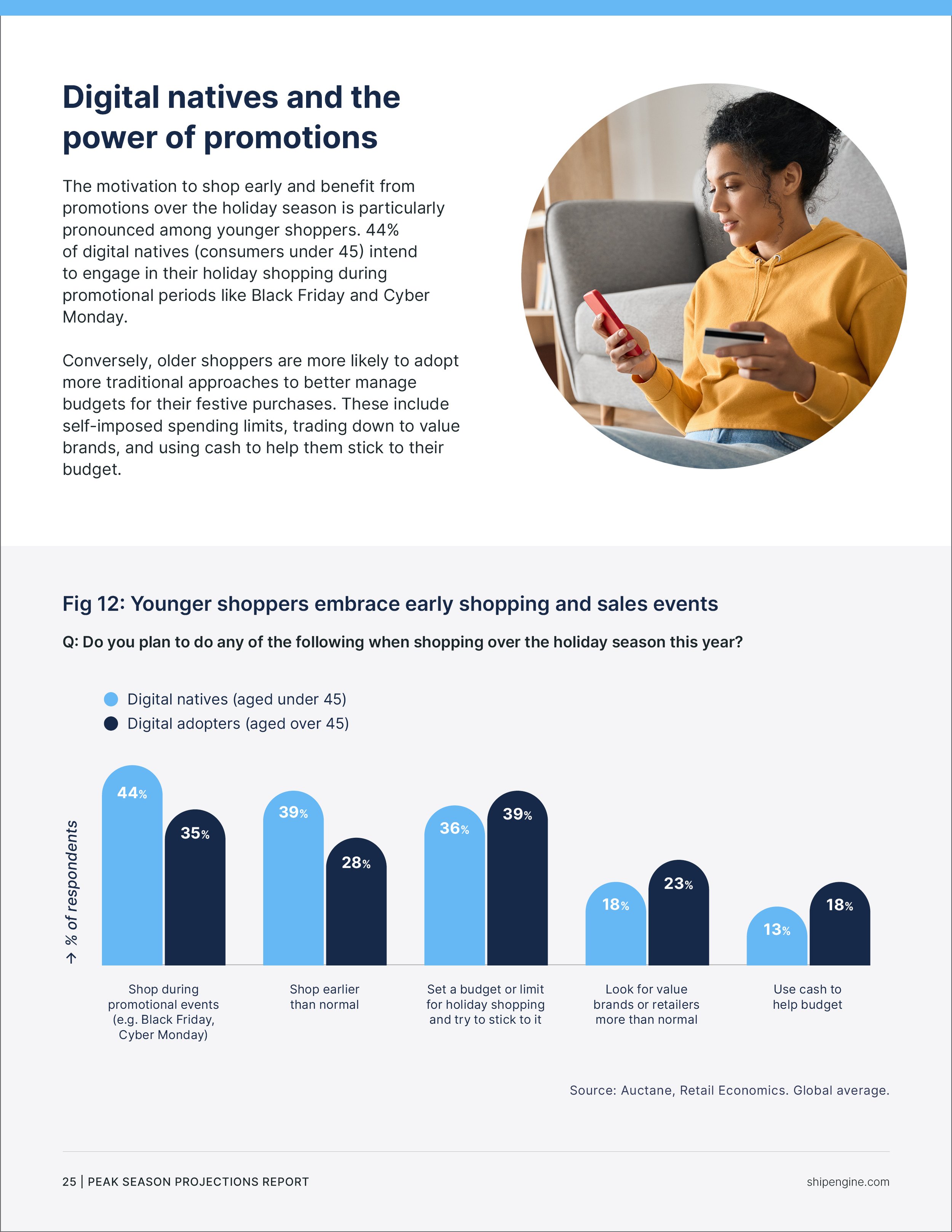 This report was created for ShipEngine in collaboration with Retail Economics to help merchants prepare for the upcoming holiday peak season. This research report is created annually as a thought leadership piece to provide customers with insights on how to best navigate the holiday shipping season. For this project, I designed the report, as well as the infographics, charts, and data visualizations that are in the report. This was part of an integrated branded campaign that promoted the report download, social promotion, paid ads, and thought leadership webinars. The result of this project was increased brand awareness and increased customer engagement.